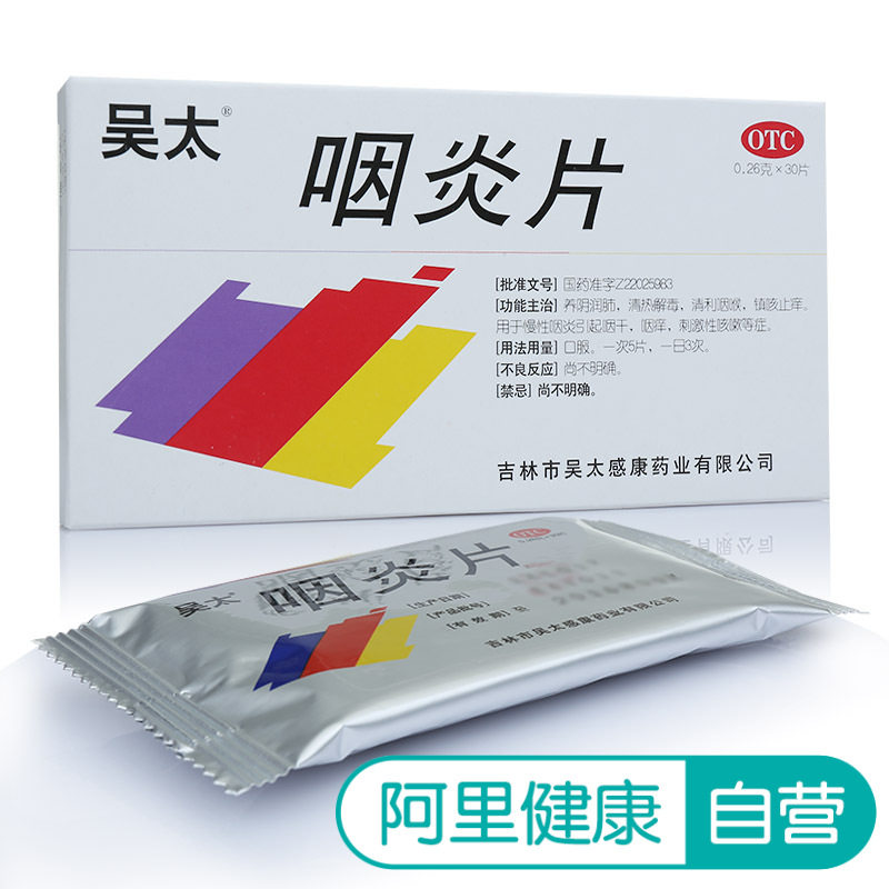 吴太咽炎片30片慢性咽炎 咽干咽痒 刺激性咳嗽止痒